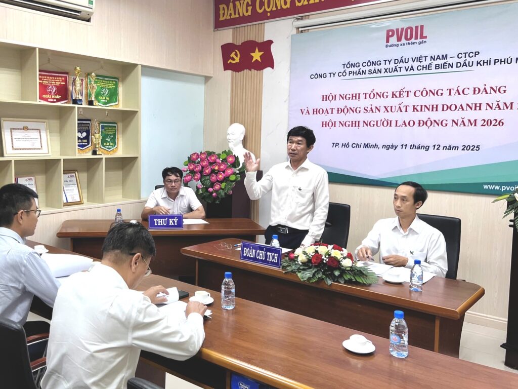 Ngày 11/12/2025, Công ty Cổ phần Sản xuất và Chế biến Dầu khí Phú Mỹ đã tổ chức Hội nghị gồm: Tổng kết công tác Đảng năm 2025, Tổng kết hoạt động sản xuất – kinh doanh năm 2025 và Hội nghị Người lao động năm 2026. Đây là dịp để toàn thể hệ thống nhìn lại kết quả một năm đầy biến động, đồng thời xác định phương hướng, nhiệm vụ trọng tâm cho năm 2026.